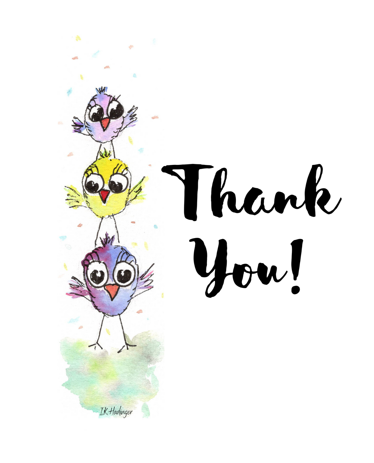Cute and whimsy! These watercolor birds will convey a cheery “Thank You”.